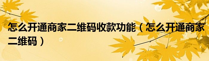 怎么开通商家二维码收款功能(怎么开通商家二维码)