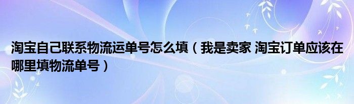 淘宝自己联系物流运单号怎么填(我是卖家 淘宝订单应该在哪里填物流单号)