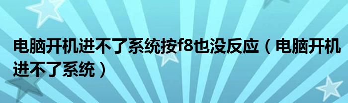 大家好,小飞来为大家解答以上问题,电脑开机进不了系统按f8也没反应,电脑开机进不了系统很多人还不知道,现在让我们一起来看看吧!