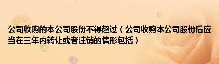 关于公司收购的本公司股份不得超过,公司收购本公司股份后应当在三年内转让或者注销的情形包括这个很多人还不知道,今天菲菲来为大家解答以上的问题,现在让我们一起来看看吧!