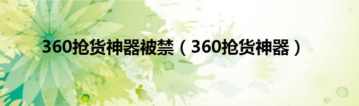 大家好,雨雨来为大家解答以上问题,360抢货神器被禁,360抢货神器很多人还不知道,现在让我们一起来看看吧!