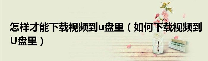 关于怎样才能下载视频到u盘里,如何下载视频到U盘里这个很多人还不知道,今天菲菲来为大家解答以上的问题,现在让我们一起来看看吧!