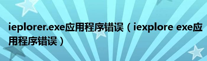 以上就是iexploreexe应用程序错误。希望能帮到你!