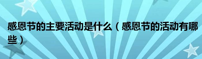 关于感恩节的主要活动是什么,感恩节的活动有哪些这个很多人还不知道,今天菲菲来为大家解答以上的问题,现在让我们一起来看看吧!