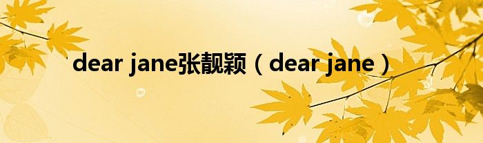 关于dear jane张靓颖,dear jane这个很多人还不知道,今天菲菲来为大家解答以上的问题,现在让我们一起来看看吧!