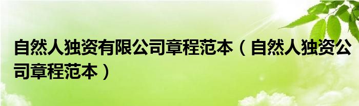 关于自然人独资有限公司章程范本,自然人独资公司章程范本这个很多人还不知道,今天菲菲来为大家解答以上的问题,现在让我们一起来看看吧!
