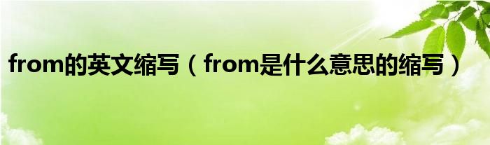 关于from的英文缩写,from是什么意思的缩写这个很多人还不知道,今天菲菲来为大家解答以上的问题,现在让我们一起来看看吧!