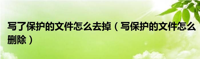 写了保护的文件怎么去掉,写保护的文件怎么删除很多人还不知道,乐乐来为大家解答以上问题,现在让我们一起来看看吧!