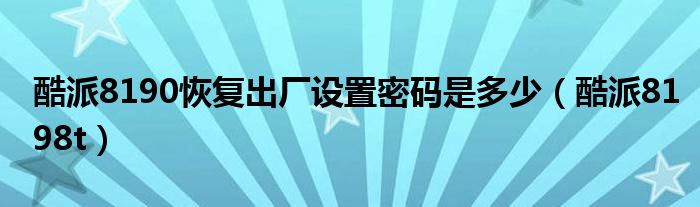 酷派8190恢复出厂设置密码是多少,酷派8198t很多人还不知道,乐乐来为大家解答以上问题,现在让我们一起来看看吧!