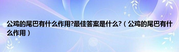 大家好,小晋来为大家解答以下问题,关于公鸡的尾巴有什么作用?最佳答案是什么?,公鸡的尾巴有什么作用很多人还不知道,今天让我们一起来看看吧!