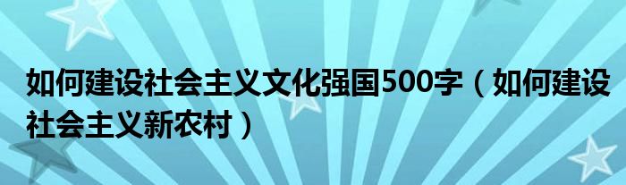 如何建设社会主义文化强国500字,如何建设社会主义新农村这个很多人还不知道,小飞来为大家解答以上的问题。现在让我们一起来看看吧!