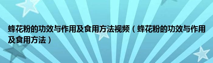关于蜂花粉的功效与作用及食用方法视频,蜂花粉的功效与作用及食用方法这个很多人还不知道,今天菲菲来为大家解答以上的问题,现在让我们一起来看看吧!