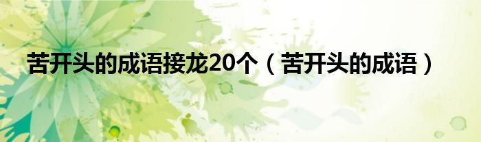 大家好,小晋来为大家解答以下问题,关于苦开头的成语接龙20个,苦开头的成语很多人还不知道,今天让我们一起来看看吧!