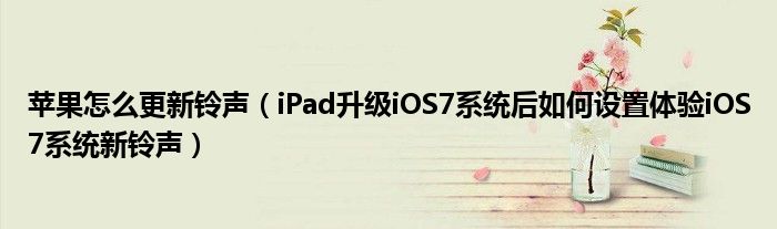 大家好,今天小悦来为大家解答以上问题。苹果怎么更新铃声,iPad升级iOS7系统后如何设置体验iOS7系统新铃声很多人还不知道,现在让我们一起来看看吧!