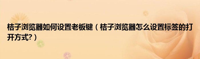 大家好,今天小悦来为大家解答以上问题。桔子浏览器如何设置老板键,桔子浏览器怎么设置标签的打开方式?很多人还不知道,现在让我们一起来看看吧!