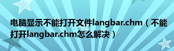 大家好,今天小悦来为大家解答以上问题。电脑显示不能打开文件langbar.chm,不能打开langbar.chm怎么解决很多人还不知道,现在让我们一起来看看吧!