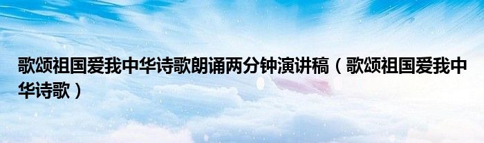 关于歌颂祖国爱我中华诗歌朗诵两分钟演讲稿,歌颂祖国爱我中华诗歌这个很多人还不知道,今天菲菲来为大家解答以上的问题,现在让我们一起来看看吧!