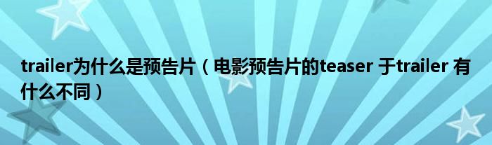 关于trailer为什么是预告片,电影预告片的teaser 于trailer 有什么不同这个很多人还不知道,今天菲菲来为大家解答以上的问题,现在让我们一起来看看吧!