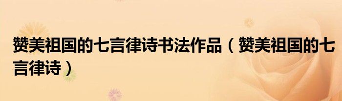 关于赞美祖国的七言律诗书法作品,赞美祖国的七言律诗这个很多人还不知道,今天菲菲来为大家解答以上的问题,现在让我们一起来看看吧!