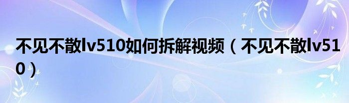 大家好,雨雨来为大家解答以上问题,不见不散lv510如何拆解视频,不见不散lv510很多人还不知道,现在让我们一起来看看吧!