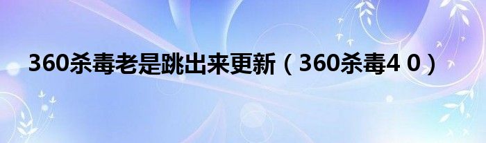大家好,雨雨来为大家解答以上问题,360杀毒老是跳出来更新,360杀毒4 0很多人还不知道,现在让我们一起来看看吧!