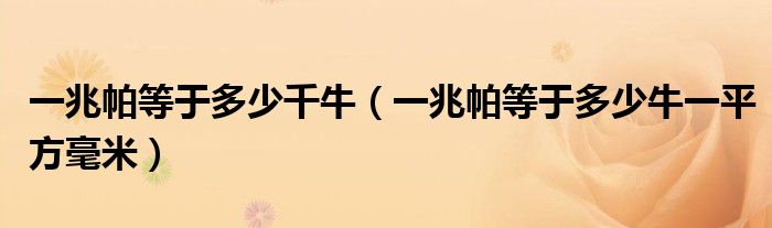 关于一兆帕等于多少千牛,一兆帕等于多少牛一平方毫米这个很多人还不知道,今天菲菲来为大家解答以上的问题,现在让我们一起来看看吧!