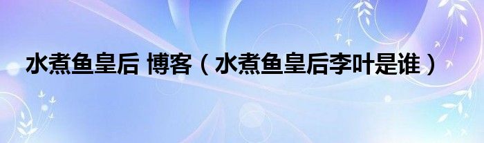 水煮鱼皇后 博客(水煮鱼皇后李叶是谁)