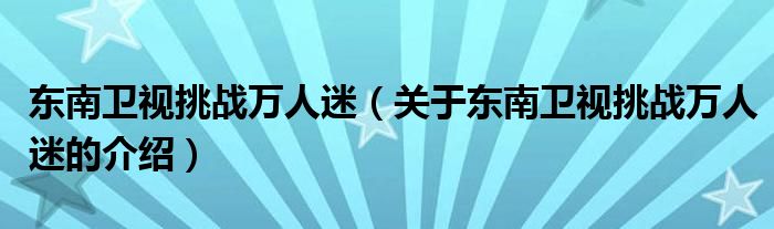 大家好,今天小乐来为大家解答以上的问题。东南卫视挑战万人迷,关于东南卫视挑战万人迷的介绍很多人还不知道,现在让我们一起来看看吧!