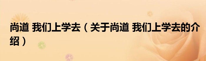 大家好,今天小乐来为大家解答以上的问题。尚道 我们上学去,关于尚道 我们上学去的介绍很多人还不知道,现在让我们一起来看看吧!