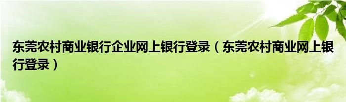 关于东莞农村商业银行企业网上银行登录,东莞农村商业网上银行登录这个很多人还不知道,今天菲菲来为大家解答以上的问题,现在让我们一起来看看吧!