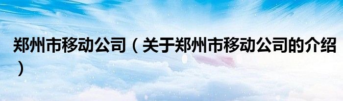 大家好,今天小乐来为大家解答以上的问题。郑州市移动公司,关于郑州市移动公司的介绍很多人还不知道,现在让我们一起来看看吧!