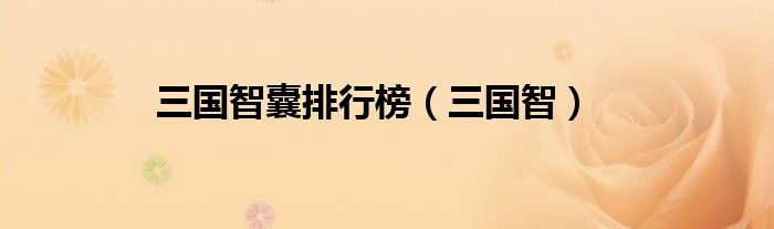关于三国智囊排行榜,三国智这个很多人还不知道,今天菲菲来为大家解答以上的问题,现在让我们一起来看看吧!