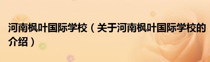 1、河南枫叶国际学校由洛阳新区管委会投资建设,引进国际知名教育品牌----中国枫叶教育集团联袂创建,是枫叶教育集团继大连、天津、武汉、重庆、镇江、鄂尔多斯等外埠校区之后的又一所枫叶国际教育园区。