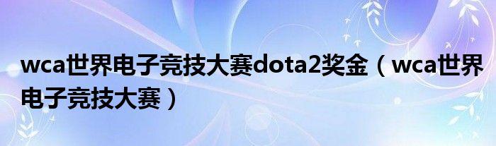 wca世界电子竞技大赛dota2奖金,wca世界电子竞技大赛这个很多人还不知道,小飞来为大家解答以上的问题。现在让我们一起来看看吧!