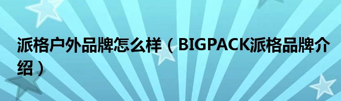 派格户外品牌怎么样(BIGPACK派格品牌介绍)