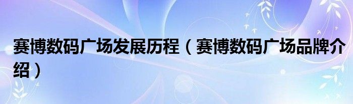 大家好,小源来为大家解答以上问题。赛博数码广场发展历程,赛博数码广场品牌介绍很多人还不知道,现在让我们一起来看看吧!