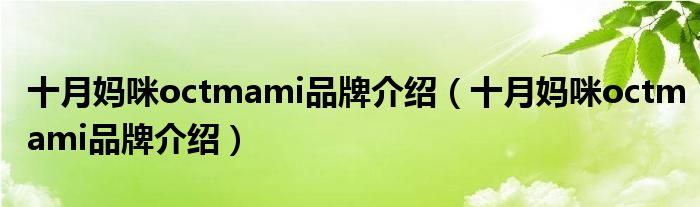大家好,小源来为大家解答以上问题。十月妈咪octmami品牌介绍,十月妈咪octmami品牌介绍很多人还不知道,现在让我们一起来看看吧!