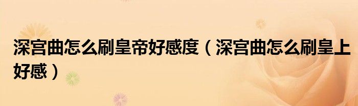 深宫曲怎么刷皇帝好感度,深宫曲怎么刷皇上好感很多人还不知道,乐乐来为大家解答以上问题,现在让我们一起来看看吧!