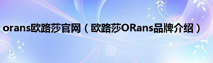 大家好,小源来为大家解答以上问题。orans欧路莎官网,欧路莎ORans品牌介绍很多人还不知道,现在让我们一起来看看吧!