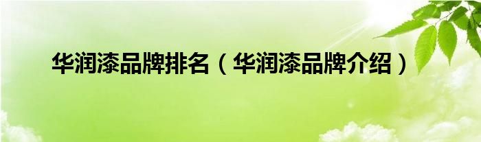 大家好,小源来为大家解答以上问题。华润漆品牌排名,华润漆品牌介绍很多人还不知道,现在让我们一起来看看吧!