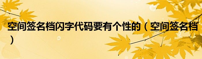 空间签名档闪字代码要有个性的,空间签名档很多人还不知道,乐乐来为大家解答以上问题,现在让我们一起来看看吧!