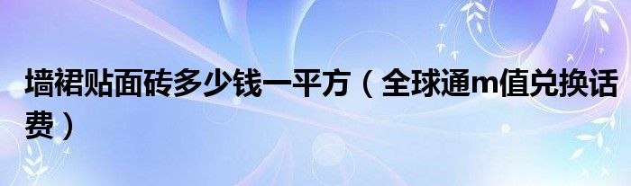 墙裙贴面砖多少钱一平方,全球通m值兑换话费这个很多人还不知道,小飞来为大家解答以上的问题。现在让我们一起来看看吧!