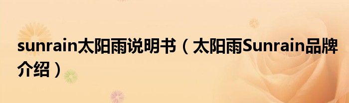 大家好,小源来为大家解答以上问题。sunrain太阳雨说明书,太阳雨Sunrain品牌介绍很多人还不知道,现在让我们一起来看看吧!
