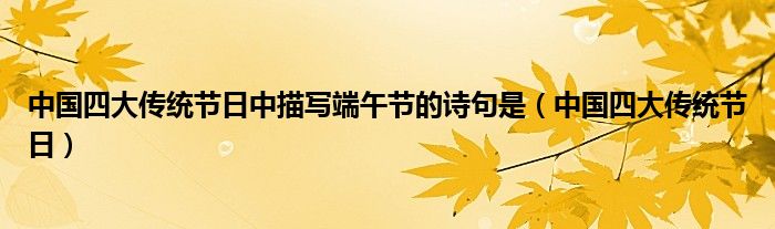 大家好,小飞来为大家解答以上的问题。中国四大传统节日中描写端午节的诗句是,中国四大传统节日这个很多人还不知道,现在让我们一起来看看吧!