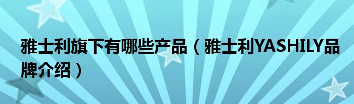 大家好,小源来为大家解答以上问题。雅士利旗下有哪些产品,雅士利YASHILY品牌介绍很多人还不知道,现在让我们一起来看看吧!