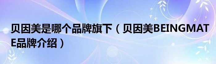 大家好,小源来为大家解答以上问题。贝因美是哪个品牌旗下,贝因美BEINGMATE品牌介绍很多人还不知道,现在让我们一起来看看吧!