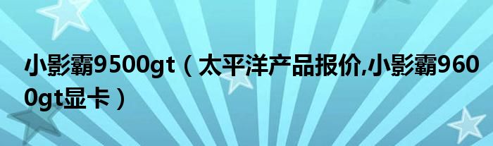 大家好,小常来为大家解答以上问题。小影霸9500gt,太平洋产品报价,小影霸9600gt显卡很多人还不知道,现在让我们一起来看看吧!