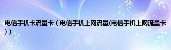 大家好,小常来为大家解答以上问题。电信手机卡流量卡,电信手机上网流量(电信手机上网流量卡)很多人还不知道,现在让我们一起来看看吧!