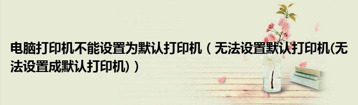大家好,小常来为大家解答以上问题。电脑打印机不能设置为默认打印机,无法设置默认打印机(无法设置成默认打印机)很多人还不知道,现在让我们一起来看看吧!