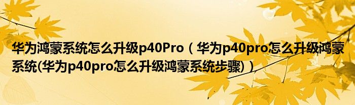 大家好,小常来为大家解答以上问题。华为鸿蒙系统怎么升级p40Pro,华为p40pro怎么升级鸿蒙系统(华为p40pro怎么升级鸿蒙系统步骤)很多人还不知道,现在让我们一起来看看吧!
